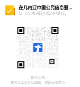 据中国驻几内亚大使馆网站消息,为更好地提供领事保护与协助服务,特别是在紧急情况下做好在几中国公民安全保护工作,中国驻几使馆请在几中国同胞于5月10日前按要求填写《在几中国公民信息登记表(2023年)》。