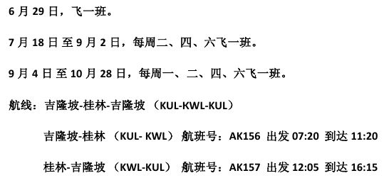 6月29日,桂林机场即将恢复桂林=吉隆坡航线,由亚洲航空执飞,是疫情后桂林恢复的第一条国际客运航线。该航线的复航将发挥机场口岸对桂林经济、旅游、商贸等方面的推动作用,更好地为往来旅客提供更加舒适、便捷的航空服务。