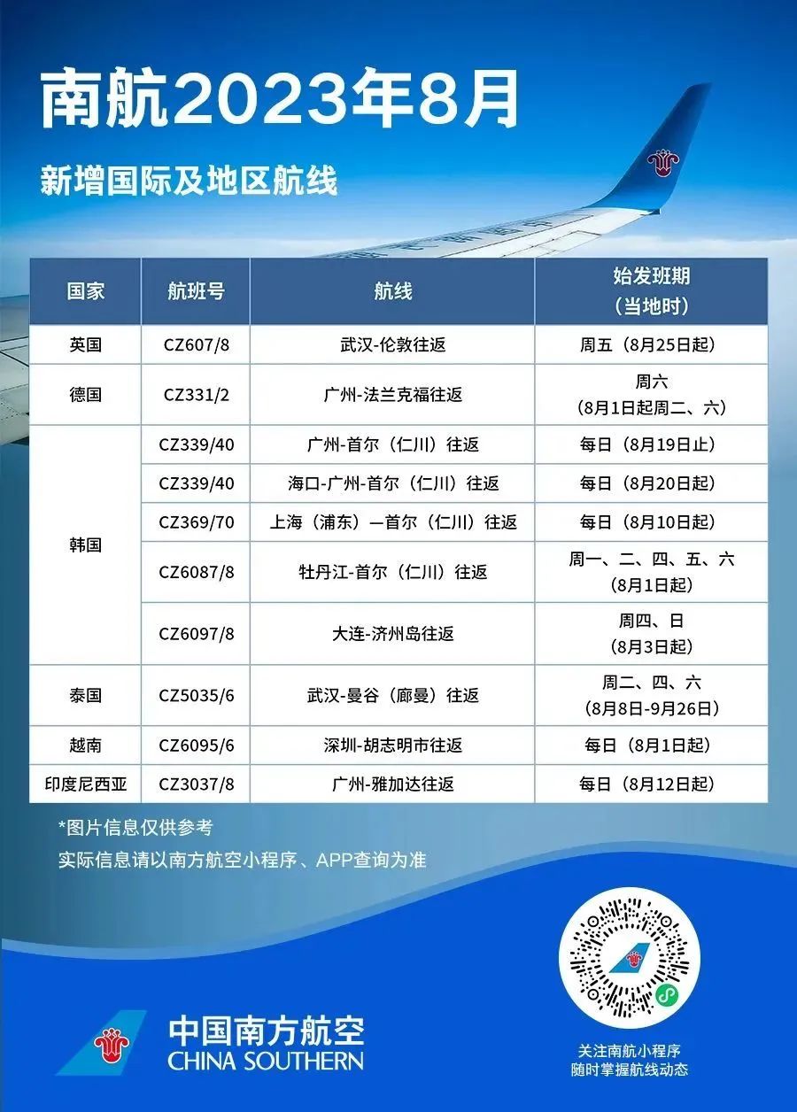 *以上航班计划可能有所变化,请以南航官网、APP、微信小程序等官方渠道实际查询为准。